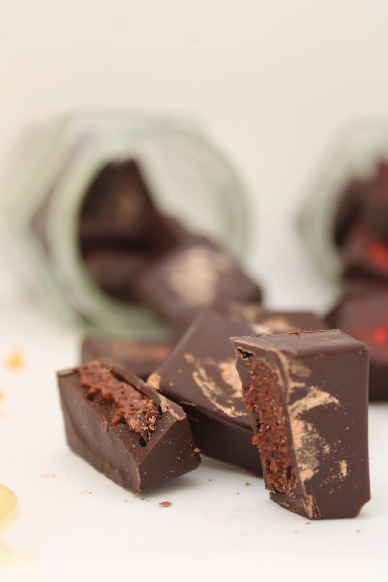 Le chocolat noir est à 70 %. Il provient de chez Cacao Barry
